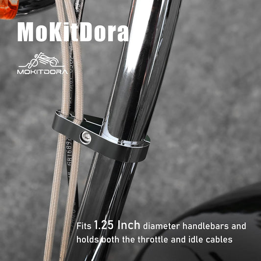 MoKitDora 1.25" Handlebar Dual Single Throttle or Frame Mount Clutch Cable Clamp Brake Line Clips for Harley