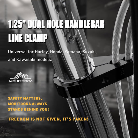 MoKitDora 1-1/4" Handlebar Clips or Frame Mount Dual Hole Throttle Clutch Cable Brake Line Clamp Universal for Harley 1.25 inch Motorcycle Bars 2 Pieces, Black
