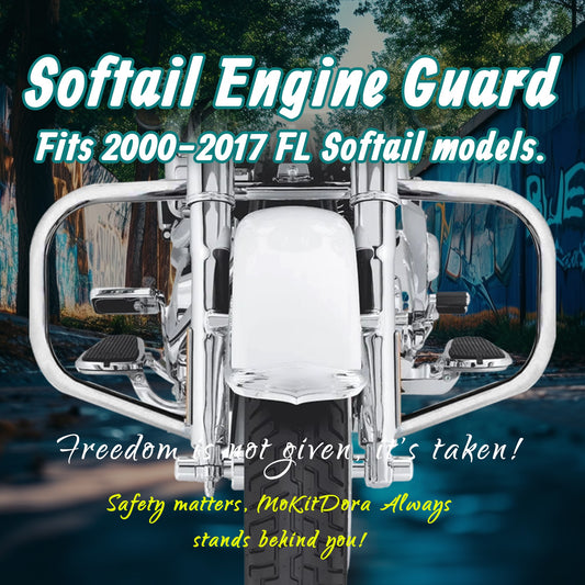 MoKitDora Engine Guard Highway Crash Bar 1.25" Fat for Harley 2000-2017 FL Heritage Softail Classic Deluxe Fat Boy FLSTF Models, Chrome