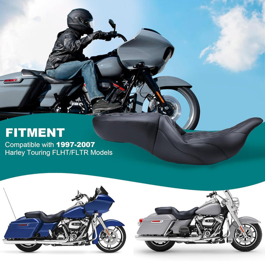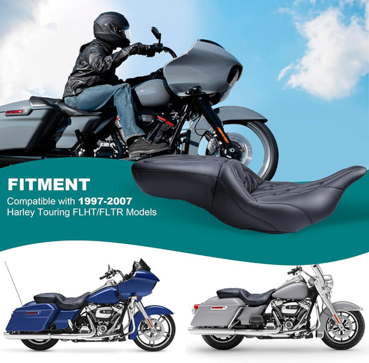 MoKitDora Touring Motorcycle Seats One-Piece Deluxe Seat for Driver Passenger Harley 1997-2007 Electra Road Glide FLHT FLTR, Lattice Stitched