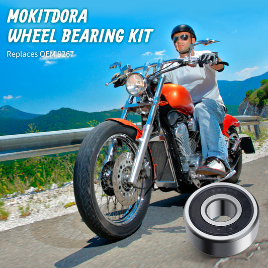 MoKitDora 25mm Wheel Bearing Sealed Kit Front Rear for 2000-2007 Harley Touring Electra Road King Glide Dyna V-Rod Sportster 883 1200 Super Glide Low Rider